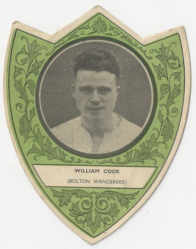 Bolton Wanderers. Shield shaped card with portrait of Cook. There is a good biography on the reverse but the cards are anonymous. [very slight crease].