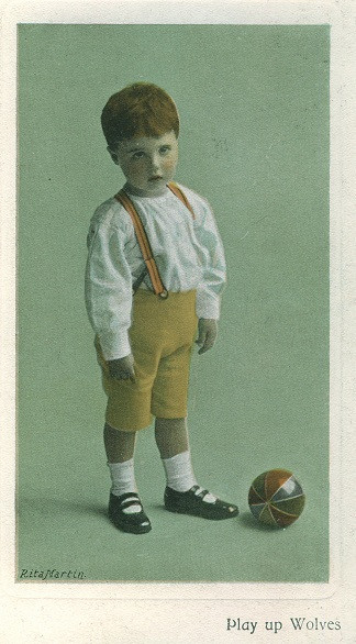 Postcard with coloured picture of a small boy with a football. Postally used in August 1908. [slight corner knocks].